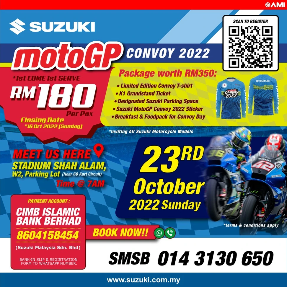 Suzuki MotoGP Convoy 2022 To Sepang International Circuit! admin February 20, 2026 Join us this 23rd October 2022 to Sepang International Circuit for our Suzuki MotoGP Convoy 2022. Package worth RM350 awaits